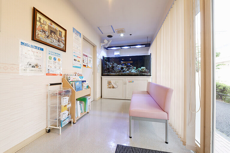 またこちらは通りに面したビルの1階ということもあり、ペットをお連れになった方の出入りもしやすいよう工夫されています。自然の光がふんだんに差し込む明るい院内で、大切なペットが心地よく過ごせることも嬉しいポイントとなっています。